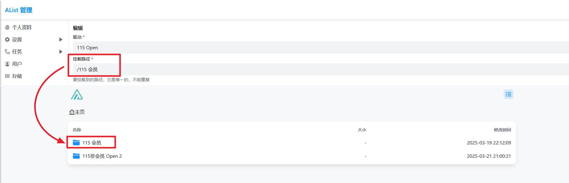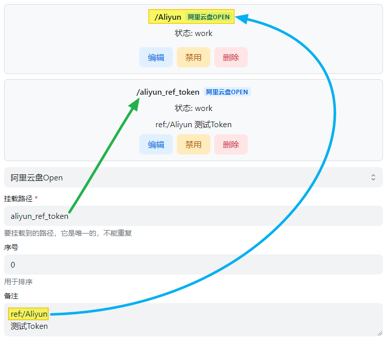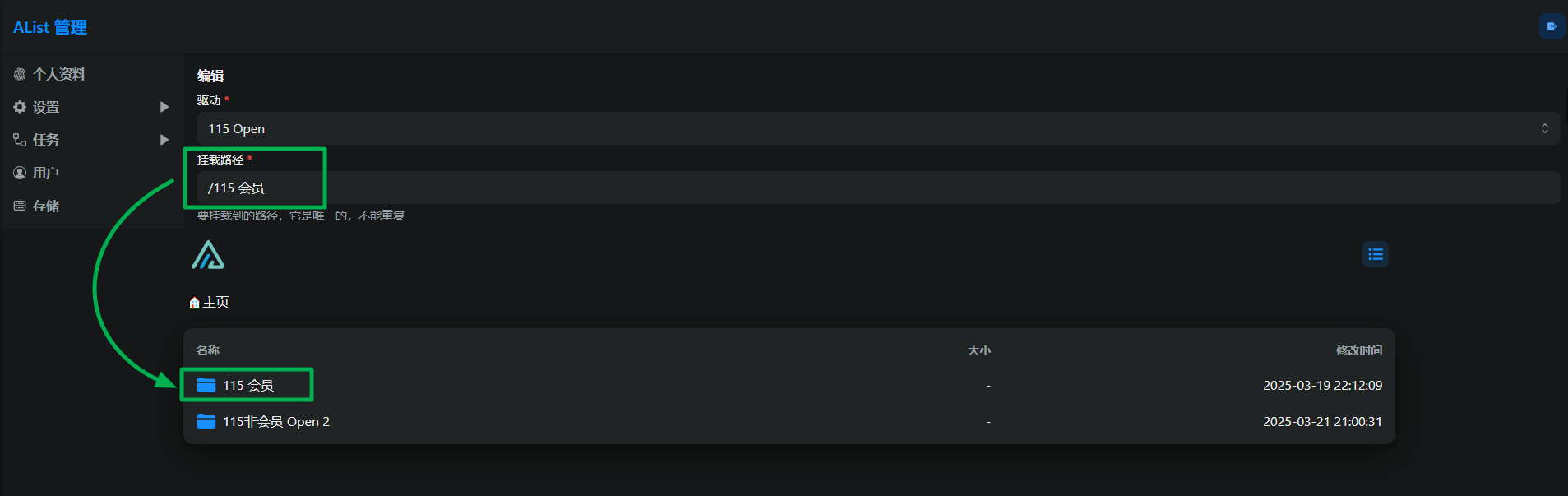 In the storage settings, set the first line of Remark to: ref:/mount path