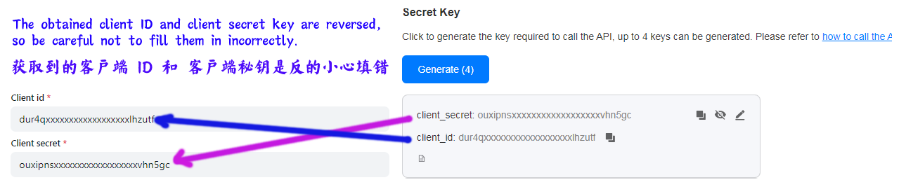 - The generated client ID and secret key are filled in in the opposite order to the OpenList, so be careful not to fill them in incorrectly.