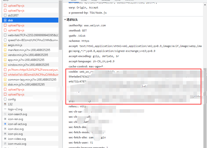 After logging in to Weiyun, Open the developer debugging tool (F12), find the request that carries the cookie in any request, copy and fill in it.